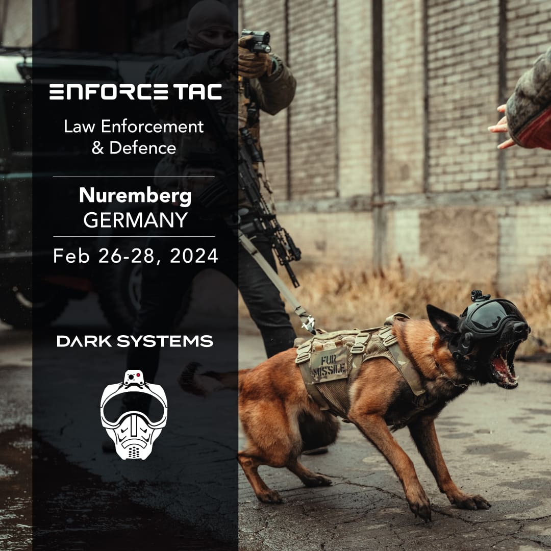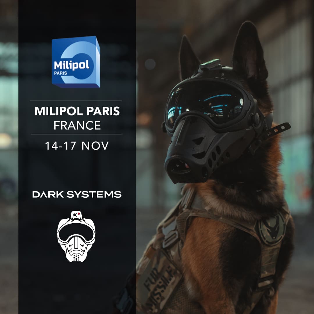 Dark Systems’ Presence at Eurosatory 2024 Biggest-Ever. This year’s largest European defence industry event, Eurosatory 2024, features the biggest-ever presence of K9 systems by the world-leading K9 helmet and electronics developer Dark Systems. Altogether 10 of the company’s K9 helmets and camera systems are on display.