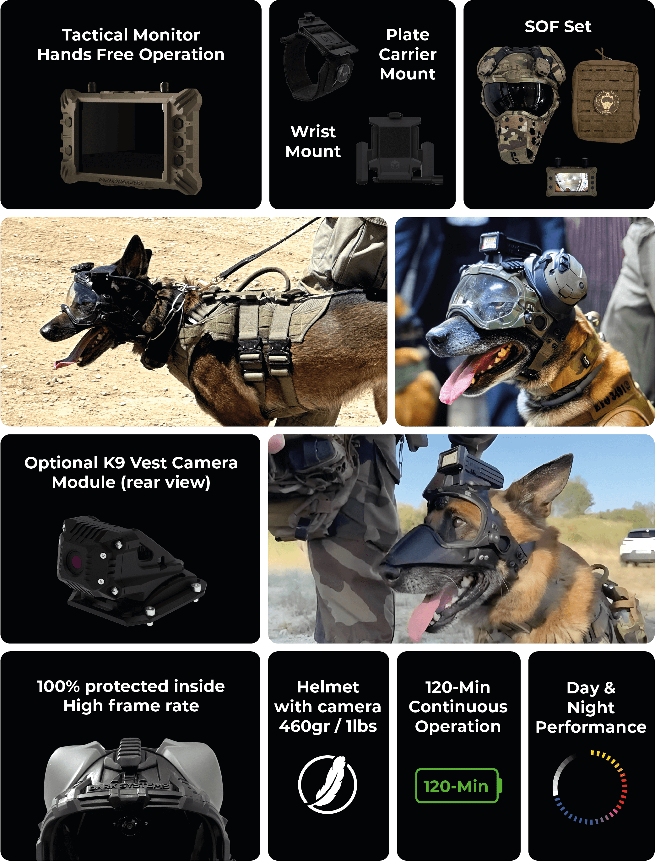 The DarkFighter Built-In K9 Camera is equipped with an advanced Battery Management System (BMS) to ensure optimal performance and complete safety under all operational conditions. When it comes to protecting the life of a working dog, there is no room for compromise. A living being is not negotiable — that’s why safety is not an option, it's a standard. 100% Engineered by Dark Systems.